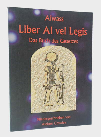 Textausgabe des Liber Al vel Legis. Das Buch enthält die deutsche Übersetzung, den englischen Originaltext und eine Reproduktion der ursprünglichen Handschrift. – Etwas eigenwillige Paginierung. Die „matte“ Umschlagvariante ist selten, nahezu alle Exemplare haben einen Glanzkarton.– Gutes Exemplar.
