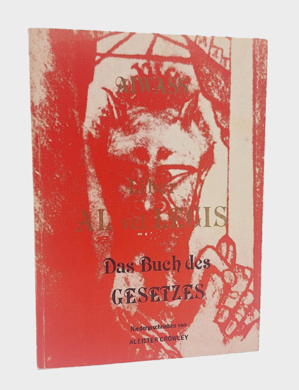 Textausgabe des Liber Al vel Legis. Das Buch enthält die deutsche Übersetzung (mit einigen kleinen Änderungen zur zweiten Auflage von Michael D[ietmar] Eschner), den englischen Originaltext und eine Reproduktion der ursprünglichen Handschrift. Der englische Text ist zeichengenau dem von Aleister Crowley redigierten Equinox Vol. 1 No. 10, entnommen. – Inhalt.: Vorwort. Teil I. Nuit. Teil II. Hadit. Teil III. Ra-Hoor-Khuit. Der Kommentar. Faksimile des Originalmanuskriptes. – Umschlag gering berieben, ein gutes Exemplar. In dieser Umschlagvariante selten.