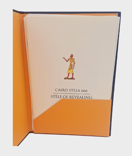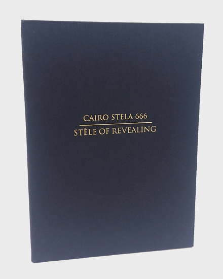 Cairo Stèla 666. Stele of Revealing. Amen Press, [Thame] 2008. [24] page booklet and 10 loose plates. Black cloth folder with gilt stamped title on the front.