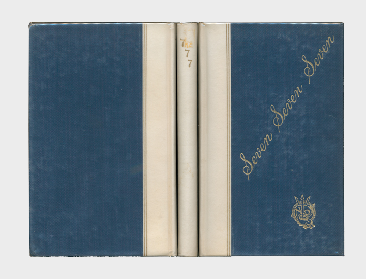 777 [Seven Seven Seven] Revised. Vel Prolegomena Sybolica ad Systemam Sceptico-Mysticae Viae Explicandae Fundamentum Hieroglyphicum Sanctissimorum Scientiae Summae. A Reprint of 777 with Much Additional Matter by The Late Aleister Crowley. The Neptune Press, London 1955. With 1 plate (The Tree of Life) and numerous tables. xxvii, 1 [w], 155 S., [1], 1 [w]. Generous vellum spine stamped in gold (777), the blue cloth of the cover with diagonal gold embossing (Seven Seven Seven) with the publisher’s emblem stamped in gilt.