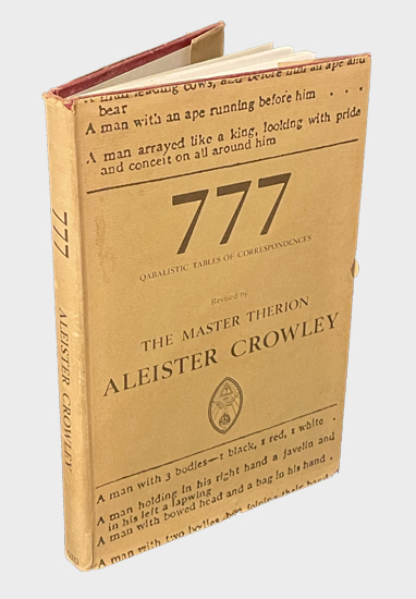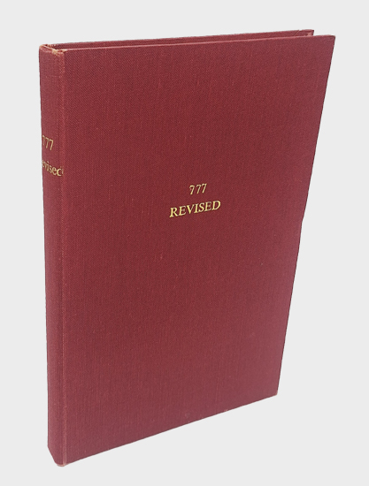 777. Revised by THE MASTER THERION (Aleister Crowley). Privately Printed by the O.T.O., no place and no date [1970]. Gr.-8°. Tree of Life frontispiece. xxvii, 155, [1] w. S. Maroon cloth Hardcover with gilt lettering across spine and upper board.