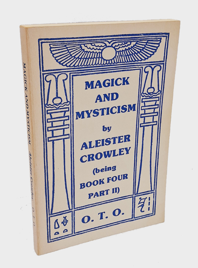 Crowley, Aleister (eigentl.: Edward Alexander C.) and Motta, Marcelo Ramos: Yoga and Magick. / Magick and Mysticism. [being Book Four Commented (annotated by Motta), Part I & II (being The Oriflamme Volume VI, Number 1 & 2)]. 2 Volumes. Society Ordo Templi Orientis International, Nashville 1982-1984. (part I: 2nd printing, 1984; part II: first edition, 1982). 4 Bl., 79 S., 3 Bl., 1 (w); 4 Bl., 172 S., 1 Bl. Vlgs.-Anz., 1 (w) illustr. Softcover(s) with pictorial wrappers.