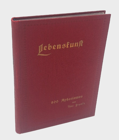 Franke, Ilse: Lebenskunst. 800 Aphorismen. Theosophisches Verlagshaus Dr. Hugo Vollrath, Leipzig o.J. [um 1910]. XVI, 159 S. OLwd. mit Goldprägung.