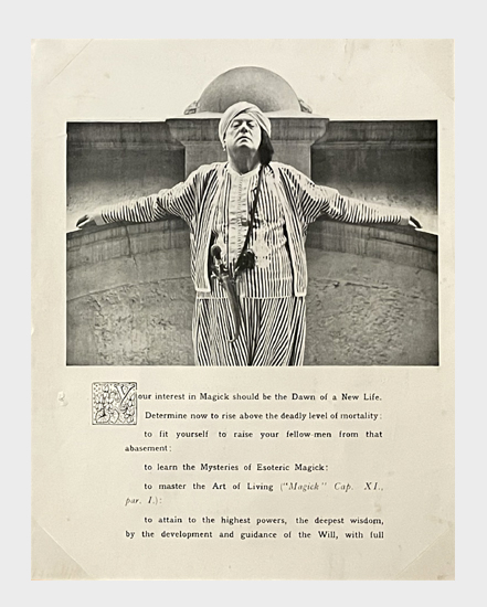 Your Interest in Magick Should Be the Dawn of a New Life. Privately published, London, no date [1934]. Gr.-8° [242 x 190 mm]. First Edition. Leaflet, printed on both sides.