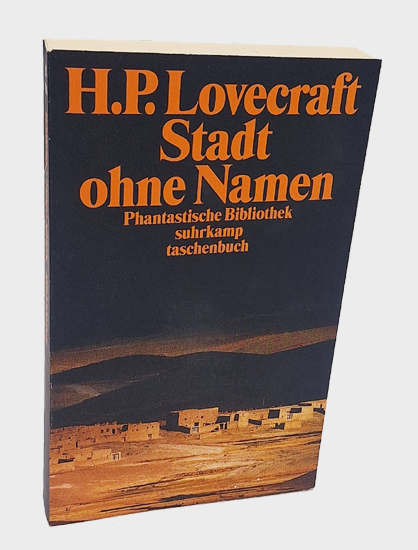 Lovecraft, H[oward] P[hilips]: Stadt ohne Namen. Horrorgeschichten. Suhrkamp Verlag, Frankfurt am Main 1997. Erste Auflage. Mit einem Nachwort von Dirk Mosig. Deutsch von Charlotte Gräfin von Klinckowstroem. 299, [1] S., 10 Bl. Vlgs.-Anz. Illustr. OKarton.
