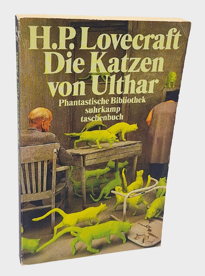 Die Katzen von Ulthar und andere Erzählungen. Suhrkamp Verlag, Frankfurt am Main 1997. Erste Auflage. Herausgegeben von Kalju Kirde. Aus dem Amerikanischen von Michael Walter. 280 S., 1 Bl., 3 Bl. Vlgs.-Anz. Illustr. OKarton.