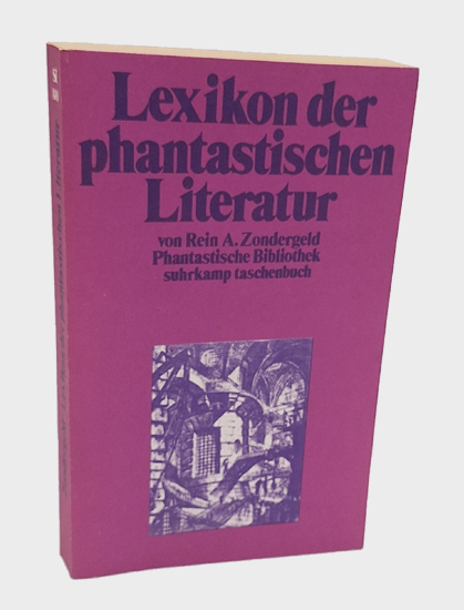 Zondergeld, Rein A.: Lexikon der phantastischen Literatur. Suhrkamp Verlag, Frankfurt am Main 1983. Erste Auflage. 313, [1] S., 3 Bl. Vlgs.-Anz. Illustr. OKarton.