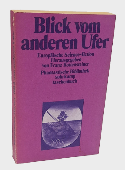 Rottensteiner, Franz (Hrsg.): Blick vom anderen Ufer. Europäische Science-fiction. Suhrkamp Verlag, Frankfurt am Main 1977. Erste Auflage. 254 S., 9 Bl. illustr. OKart.