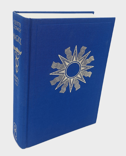 Magick. Liber ABA. Book Four Parts I – IV. Samuel Weiser Inc., York Beach, Maine 2000. 4° [260 x 185 mm]. Second revised Edition. Edited, annotated and introduced by Hymenaeus Beta [William Breeze]. With Crowley frontis-portrait, b&w illustrations and color plates. References, appendices and indexes. lxxxiv, 844 S. Blue cloth with gilt title on spine, gilt emblem on front cover. With dust jacket in Mylar.