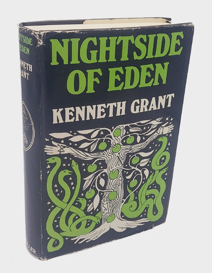 Grant, Kenneth: The Nightside of Eden. Frederick Muller Limited, London 1977. Cover design by Steffi Grant. With 18 s/w plates on art paper, 2 diagrams and 5 sigils. xiv [incl. Frontispiz], 1 Bl., 304 S. Black cloth with silver spine title and original dust jacket.