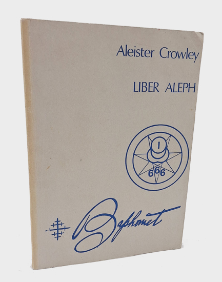 Clarie 334 (1975 edition). Cross-Index A20. – Crowley wrote Liber Aleph in 1918 with the intention of composing a kind of missive to his “magical son and heir” Charles [Robert] Stansfeld Jones [Frater Achad]. Liber Aleph therefore contains Crowley’s entire teaching in condensed form. Crowley himself wrote about this book: “Liber Aleph, the book of wisdom or folly, was intended to reflect the heart of my teaching in its deepest and most delicate dimensions. It is the most taut and lively book I have ever written.” – Text printed in blue, with index. Although the cover and spine say “Seattle”, the book was actually produced by The Unicorn Bookshop of Brighton, England. It is a verbatim reproduction of Karl Germer’s 1961 publication, but in a smaller format and with errors corrected on the page, and is the first British publication of the text. – Copy slightly rubbed and bumped. Scarce.