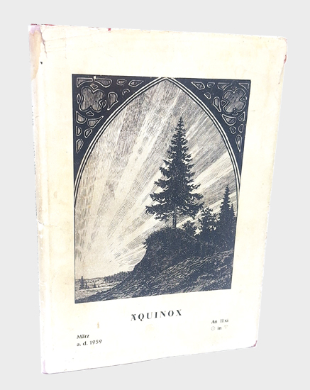 Ausführlich über den Schweizer O.T.O. und deren Publikationen in: Iris Blum “Mächtig Geheim. Einblicke in die Psychosophische Gesellschaft 1945-2009”. – Herausgegeben im Auftrage der Grossen Weissen Bruderschaft als A.·.A.·. bekannt. – Limitierte Auflage von 500 handschriftlich nummerierten Exemplaren. Dies ist Buch Nr. 206. – “Dieses Buch ist in gewissem Sinne Fortsetzung und Abschluß des IV. Aequinox-Bandes; trotzdem ist es ein in sich abgeschlossenes Buch”.– Der Umschlag zeigt das erste der zwölf Schwarz-Weiss-Bilder von Friedrich Preuss zu einem Gedicht von Friedrich Kurt Benndorf “Lob der Stille”. – Aus der Bibliothek von Michael Gebauer. Vorsatz mit gestempelten Exlibris. Umschlag berieben, gering fleckig und mit Randläsuren, sonst ein gutes Exemplar.