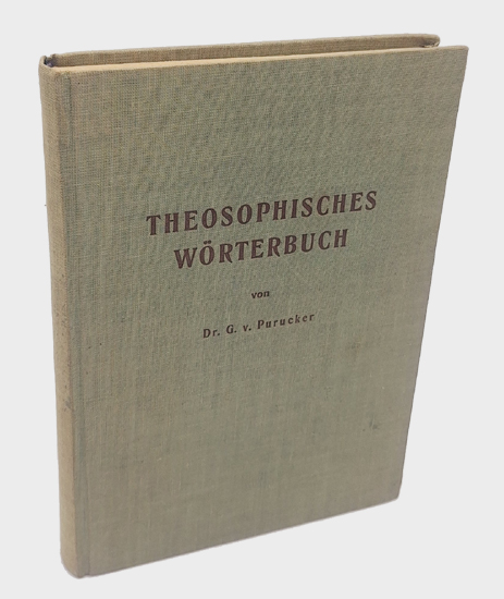 Purucker, Dr. G[ottfried] v[on]: Theosophisches Wörterbuch. Eine Sammlung und Erklärung orientalischer und theosophischer Ausdrücke. Die Theosophischen Gesellschaft (Pasadena), München 1949. 2. Auflage. Autorisierte Uebersetzung der englischen Originalausgabe. 205, [1] w. S. OLwd.