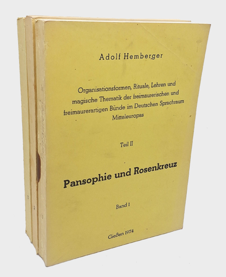 Hemberger, Adolf: Pansophie und Rosenkreuz (Band 1-3, so komplett). Selbstverlag (Privatdruck) des Verfassers, Giessen 1974. 4°. 1 Bl., 208, 270, 259 S. gelbe OKarton-Bände.