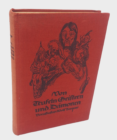 Becquer, Gustav Adolf: Von Teufeln, Geistern und Dämonen. Georg Müller, München 1922. Erstes bis fünftes Tausend. Einführung, Auswahl und Übersetzung besorgte Hans Krüger-Welf. Mit 11 Bildern von Paul Haase. 315, [1] S., 2 Bl. Vlgs.-Anz. Illustr. OLwd.