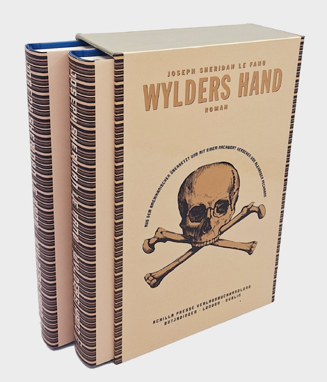 Le Fanu, Joseph Sheridan: Wylders Hand. Roman. Achilla Presse Verlagsbuchhandlung Mirko Schädel, Butjadingen-London-Dublin o.J. [um 2001]. Gr.-8°. 323, 5 S. Vlgs.-Anz.; 335, [1] S. Blaue OFeinleinen-Bände mit OUmschlag im Schuber.