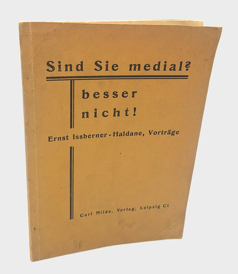 Issberner-Haldane, Ernst: Sind Sie medial? – besser nicht! Carl Milde Verlag, Leipzig o.J. [ca. 1935]. 27, [1] S. 2 Bl. Vlgs.-Anz. OKarton.