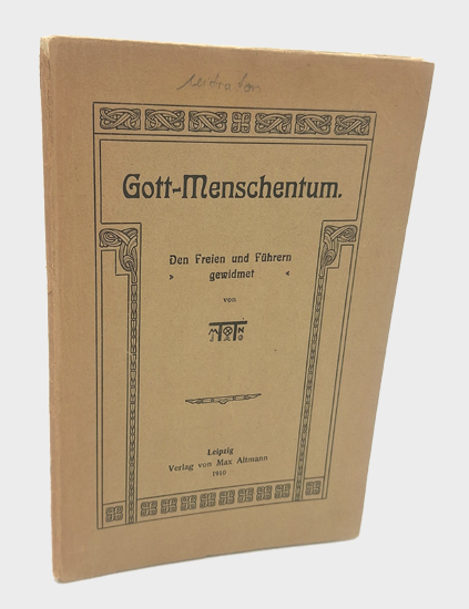 Gott-Menschentum. Den Freien und Führern gewidmet. Verlag von Max Altmann, Leipzig 1910. 49, [1] S., 3 Bl. Vlgs.-Anz. OKarton.
