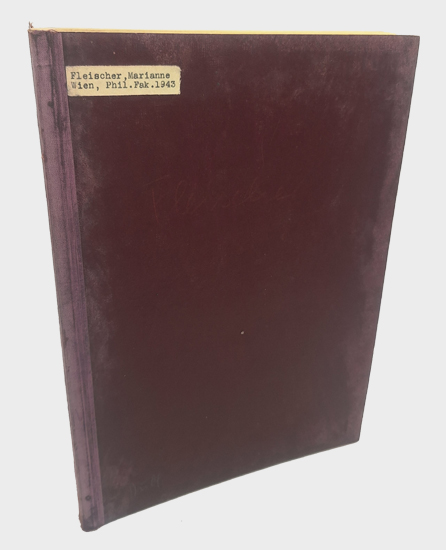 Fleischer, Marianne: Der altdeutsche Aberglaube im Spiegel der Sprache. Philosophische Fakultät, Wien 1943. 4°. 3 Bl., IX, 178, 1 S. [einseitig beschrieben]. Typoskript im Pappband mit Gewebestreifen.