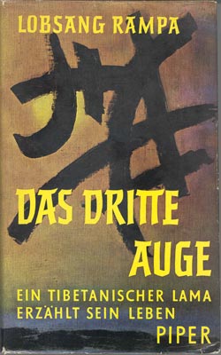 Rampa, Lobsang (Ps.) = Cyril Hoskins: Das dritte Auge. Ein tibetanischer Lama erzählt sein Leben. Aus dem Engl. Übers. von Herbert u. Waltraut Furreg. München, R. Piper & Co. 1958. 71.-85.Tsd. Mit 1 Planskizze von Lhasa. 317 S., 1 Bl. goldgepr. OLwd.