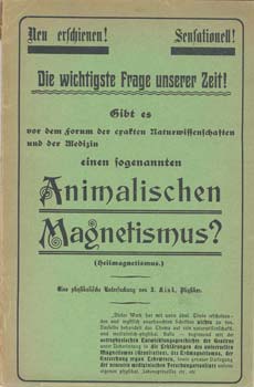Rink, J.: Die wichtigste Frage unserer Zeit! Gibt es vor dem Forum der exakten Naturwissenschaften und der Medizin einen sogenannten Animalischen Magnetismus? (Heilmagnetismus). Eine physikalische Untersuchung von J. Rink, Physiker. [Ohne Ort, Verlag] [1905]. 60 S., 2 w.Bl. OBrosch.