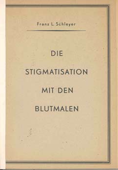 Schleyer, Dr. Franz L.: Die Stigmatisation mit den Blutmalen. Biographische Auszüge und medizinische Analyse. Hannover, Schmorl & von Seefeld Nachf. 1948. 154 S. OBrosch.