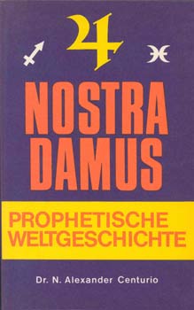 Centurio, Dr. N. (Ps.) = Dr. Alexander Zentgraf: Nostradamus. Prophetische Weltgeschichte. Übers. und gedeutet. Bietigheim / Württ., Turm-Vlg. 1977. 7. überarbeitete und ergänzänzte Aufl. Mit Textfig. 292 S. OKart.