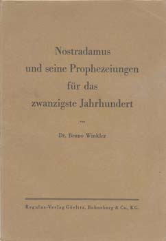 Winkler, Dr. Bruno: Nostradamus und seine Prophezeiungen für das zwanzigste Jahrhundert. Regulus-Verlag Görlitz, Bohneberg & Co., KG., 1939. 51 Seiten, OKart.