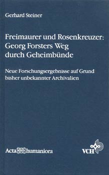 Steiner, Gerhard: Freimaurer und Rosenkreuzer – Georg Forsters Weg durch Geheimbünde. Neue Forschungsergebnisse auf Grund bisher unbekannter Archivalien. Weinheim / Deerfield Beach (Florida), Acta humanoria VCH Verlagsgesellschaft 1985. Mit 1 Port. u. 20 Taf. 222 S. OLwd.