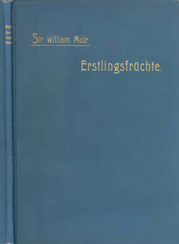 Muir, Sir William (Übers.): Erstlingsfrüchte der heiligen Schrift aus Syrien. Eine Erzählung aus dem neuzehnten Jahrhundert Über den Wert und die Wahrheit des christlichen Glaubens. Berlin, Vlg. der Deutschen Orient-Mission [1901]. Gr.-8°. Aus dem Arabischen ins Englische übertragen von Sir William Muir, nach der englischen Übersetzung bearbeitet von A. F. S. 3 Bl., 118 S., 2 Bl. Vlgs.-Anz. OLwd.