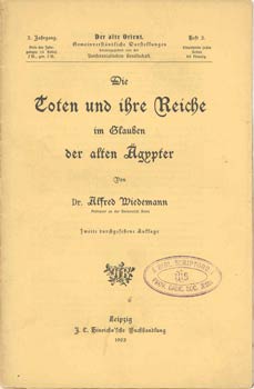 Wiedemann, Dr. Alfred: Die Toten und ihre Reiche im Glauben der alten Ägypter. J. C. Hinrichs`sche Buchhandlung, Leipzig 1902. Der Alte Orient. 2. Jahrgang, Heft 2. 35 S. OBrosch.