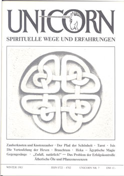 Jörg Wichmann (Hrsg): Unicorn. Magie – Schamanismus – Wege zur Erde. Nummer 7. Winter 83. Herausgegeben von Jörg Wichmann. Von. S. 185 – 244. (Jahrgangszählung) 4°. Illustr. OBroschur.