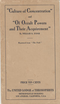 Judge, William Q.: Culture of Concentration and Of Occult Powers and Their Acquirement. The United Lodge of Theosophists, Los Angeles / California o.J. (um 1930). Kl.-8°. 31 S. OKart.