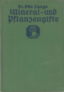 Lange, Dr. Otto: Mineral- und Pflanzengifte. Franckh’sche Verlagsbuchhandlung, Stuttgart 1929. Mit einem farb. Umschlagbild von W. Planck und 29 Abbildungen nach Originalzeichnungen und Photographien. 78 S., 1 Bl. OLwd.