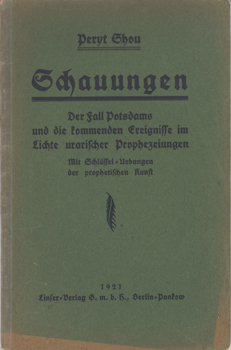 Schauungen. Der Fall Potsdams und die kommenden Ereignisse im Lichte urarischer Prophezeiungen. Mit Schlüssel-Uebungen der prophetischen Kunst. Linser Verlag G.m.b.H., Berlin-Pankow 1921. 47 S. OKart.