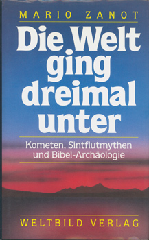 Zanot, Mario: Die Welt ging dreimal unter. Kometen, Sintflutmythen und Bibel-Archäologie. Weltbild Verlag, Augsburg 1991. Berechtigte Übersetzung von Hilde Linnert. Mit Abbildungen im Text und auf Tafeln. 263 S. OPp. mit OUmschlag.