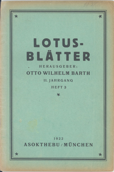 Barth, Otto Wilhelm (Hrsg.): Lotusblätter. II. Jahrgang, Heft 3. Asokthebu, München 1922. 1 Bl., S. 67-96 OKarton.