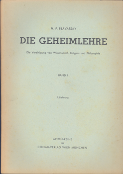 Blavatsky, (H)elena (P)etrowna: Die Geheimlehre. Die Vereinigung von Wissenschaft, Religion und Philosophie. Band I. 1. bis 6. Lieferung. Donau-Verlag, Wien u. München o.J. [1955]. Gr.-8°. 384 S. OBroschuren.