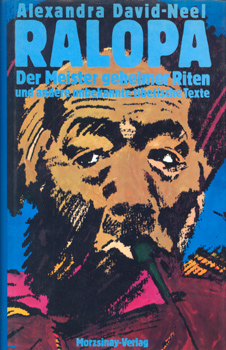 David-Néel, Alexandra: Ralopa. Der Meister geheimer Riten und andere unbekannte Texte. Janos Morzsinay Verlag, Bern 1980. Zweite Auflage. Die autorisierte deutsche Übersetzung besorgte Dr. Ursula von Mangoldt. 171 S., 1 Bl. 1 (w) OPp. mit OUmschlag.