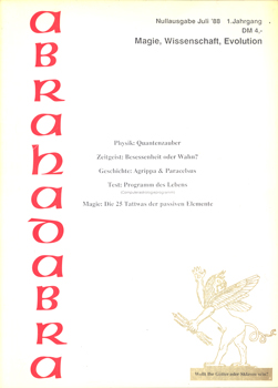Abrahadabra. Magie, Wissenschaft, Evolution. (Nullausgabe Juli 1988. 1. Jahrgang). Logos Verlag o. Thorbrügge, Soltendieck 1988. 4°. Mit Textabbildungen. 34 S. farbig illustr. OBroschur.