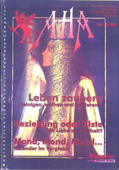 Sabrina Ulbrich (Hrsg.): AHA. Magazin des Neuen Äons. (Dezember / Januar 1996. 8 Jahrgang, Nr. 6). EVOLOS Verlag Sabrina Ulbrich, Bergen/Dumme 1996. 4°. Mit zahlreichen Textabbildungen. 73 S. farbig illustr. OBroschur.