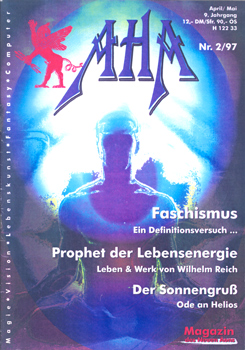 AHA. Magazin des Neuen Äons. (April / Mai 1997. 9 Jahrgang, Nr. 2). EVOLOS Verlag Sabrina Ulbrich, Bergen/Dumme 1997. 4°. Mit zahlreichen Textabbildungen. 74 S. farbig illustr. OBroschur.