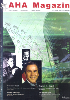 AHA. Magazin. (August / September 2005. 18 Jahrgang, Nr. 4). Tiphareth – Verlag, Bergen 2005. 4°. Mit zahlreichen Textabbildungen. 64 S. farbig illustr. OBroschur.