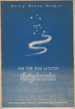 Decker, Heinz Bruno: Am Tor zum letzten Geheimnis. (Unfaßbare Tatsachen). Walter Dorn Verlag, Bremen u. Hannover 1946. 167 S. OPp.