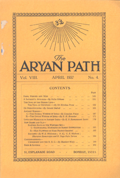 The Aryan Path. Vol. VIII. April 1937, No. 4. K. N. Panday, Theosophy Company, Bombay (India) 1937. Gr.-8°. S. 146 [145] bis S. 191 OKarton.