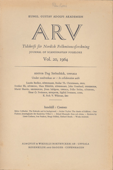 Strömbäck, Dag (Editor): ARV. Tidskrift för Nordisk Folkminnesforskning. Journal of Scandinavian Folklore. [Vol. 20]. Almqvist & Wiksells Boktryckeri, Copenhagen 1964. Gr.-8°. 211 S. OKarton.