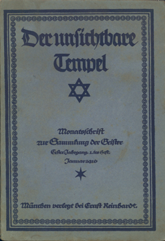 Der unsichtbare Tempel. Monatsschrift zur Sammlung der Geister. (1. Jahrgang. 1. Heft). Ernst Reinhardt, München (Januar) 1916. 48 S. OKarton.
