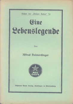 Heimerdinger, Alfred: Eine Lebenslegende. Johannes Baum Verlag, Pfullingen in Württemberg o.J. [um 1925]. 27 S., 2 Bl. Vlgs.-Anz. OKarton.