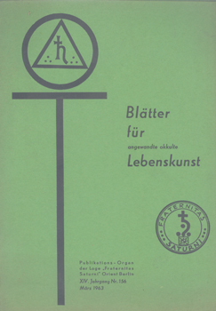 Blätter für angewandte okkulte Lebenskunst. XIV. Jahrgang, Nr. 156. Verlag Otto Max Eugen Grosche, Berlin-Grunewald März 1963. S. 33-48. illustr. OKarton.