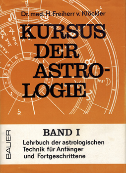 Klöckler, H(erbert) Frhr. von: Kursus der Astrologie. 3 Bände. (Gesamtausgabe). Verlag Hermann Bauer, Freiburg im Breisgau 1984. 6. bis 8. Auflage. 212 S., 263 S., 2 Bl., 243 S., 2 Bl. Schwarze OPp. mit OUmschl.